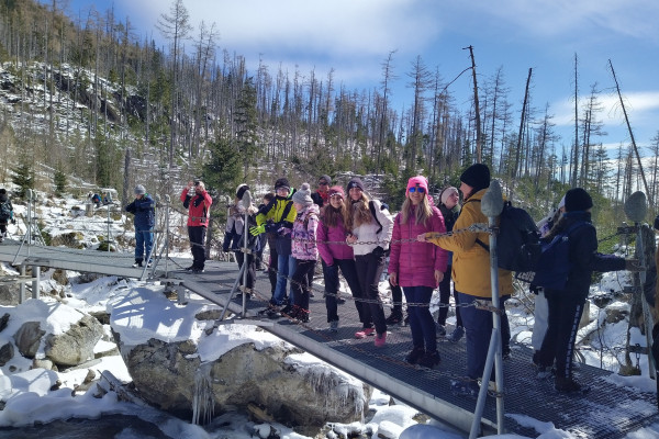 Začátkem dubna 2025 se žáci a učitelé vypravili vlakem na týdenní návštěvu do Základné školy a materské školy v Rozhanovcích, blízko Košic. Společně se slovenskými vrstevníky se zabývali ekologickými tématy jako je ochrana přírody a recyklace odpadu. Součástí pobytu byla prohlídka Košic, ale i výlet do Vysokých Tater, zahrnující túru na Hrebienok a ke Štrbskému plesu. Pro některé naše žáky to byl vůbec první výjezd do zahraničí a pro většinu první zkušenost se sousedním Slovenskem. Byli překvapeni, že si s vrstevníky velmi dobře rozumí, i když některá slova pro ně byla nesrozumitelná. Ke kulturnímu obohacení žáků patřila i zkušenost se slovenskými národními jídly, zejména se to týkalo halušek s bryndzou. Žákům se mobilita na Slovensko velmi líbila, ocenili program, který pro ně slovenská škola připravila.