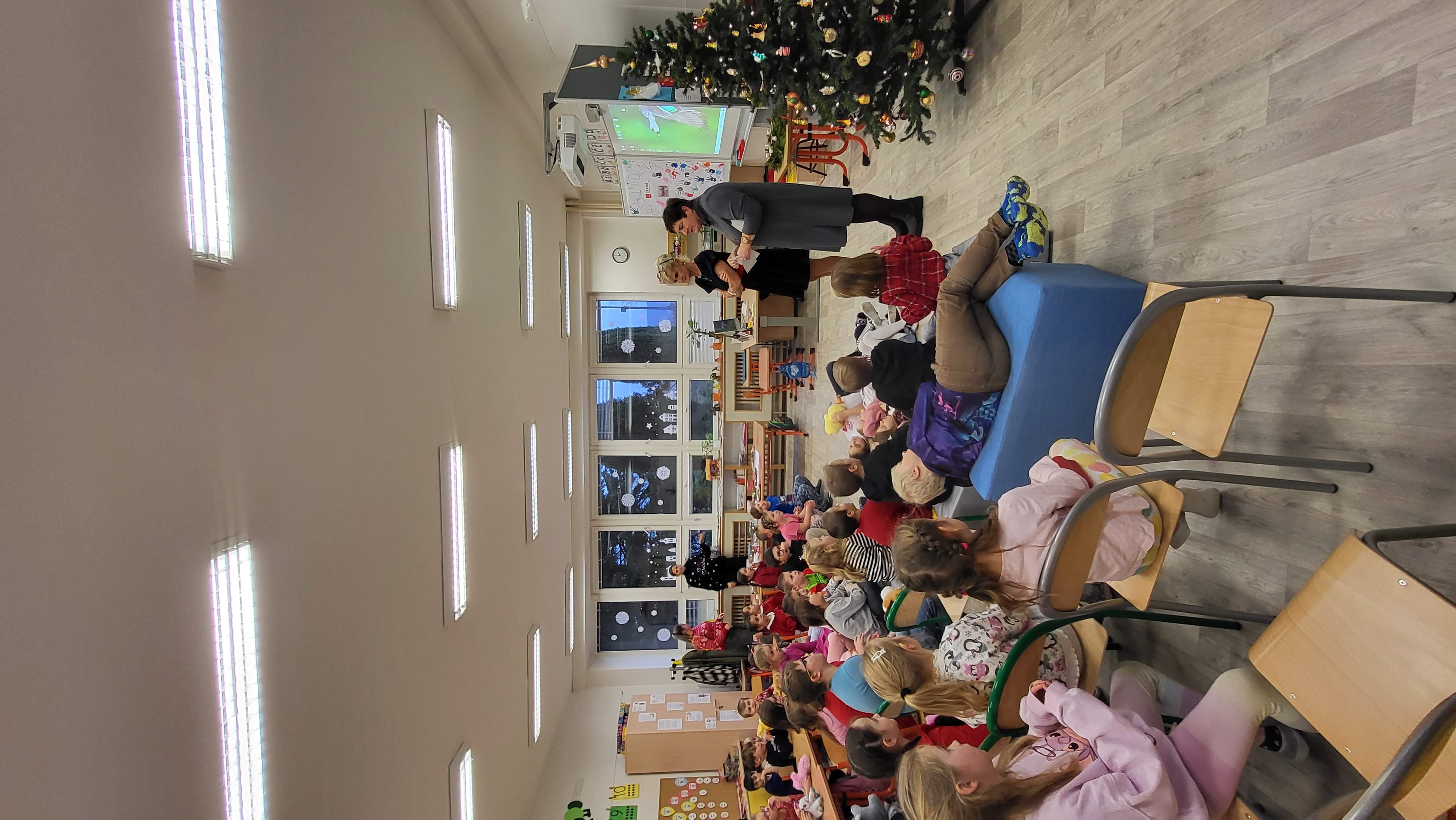 1. Pantomima se zimní tématikou: Děti projevily neuvěřitelný herecký talent. Hádali jsme vše od lyžování a bruslení až po pečení vánočky nebo sypání krmení ptáčkům.