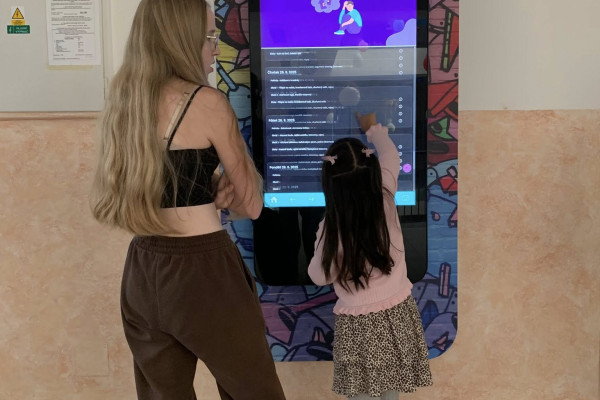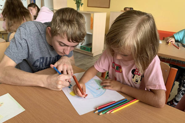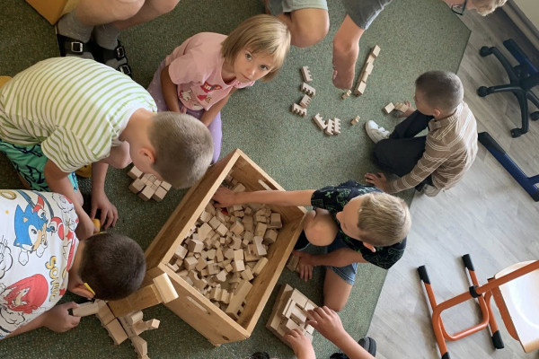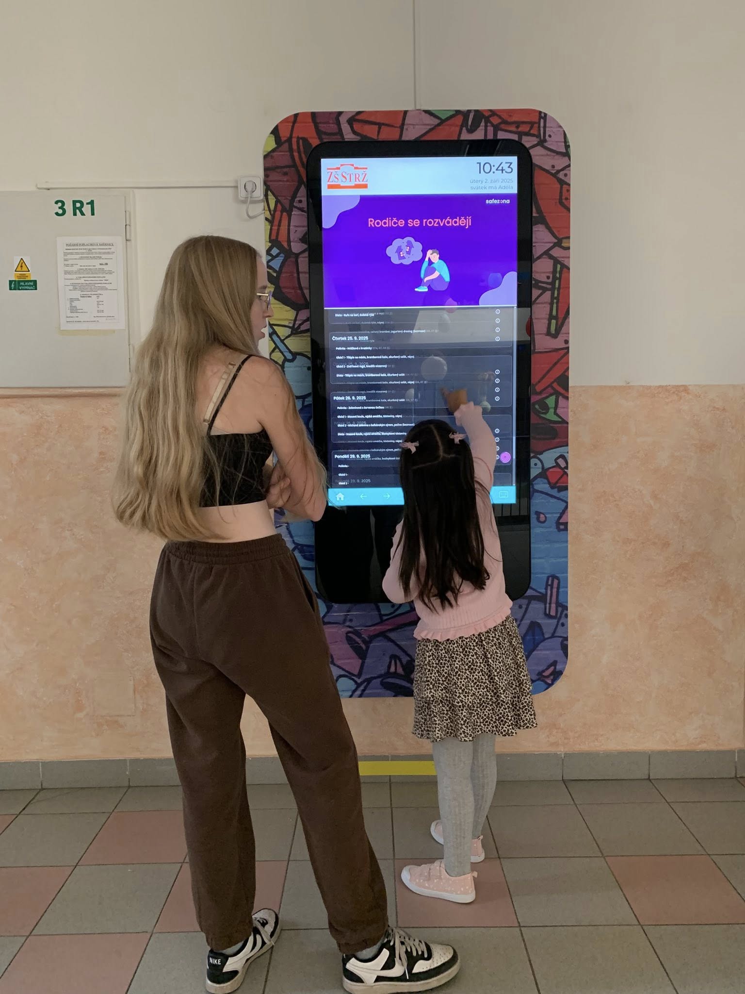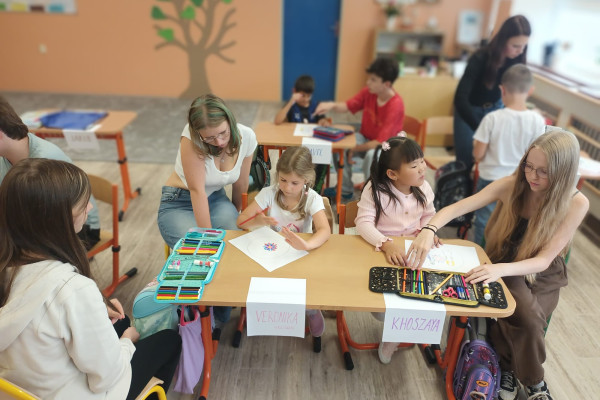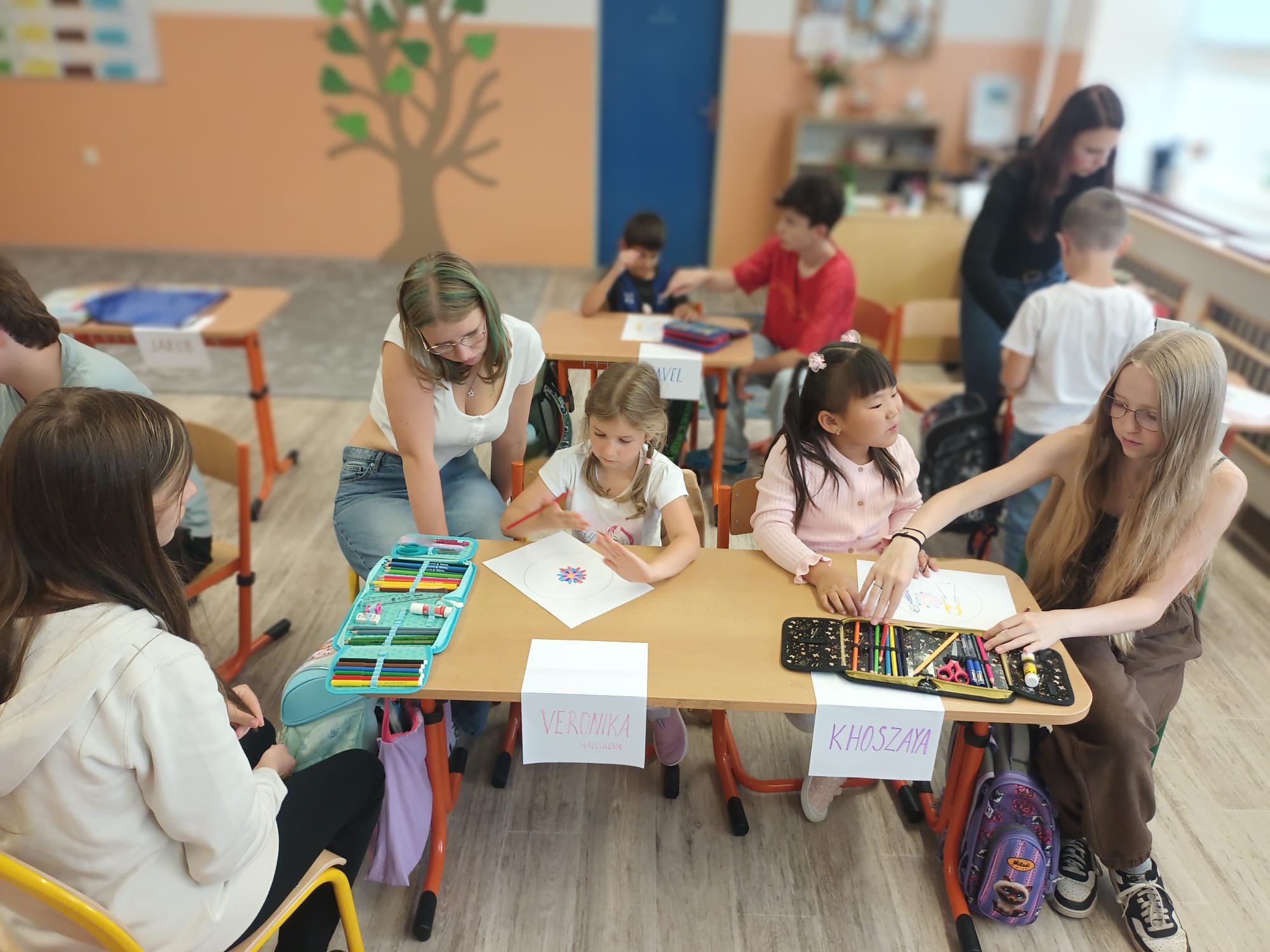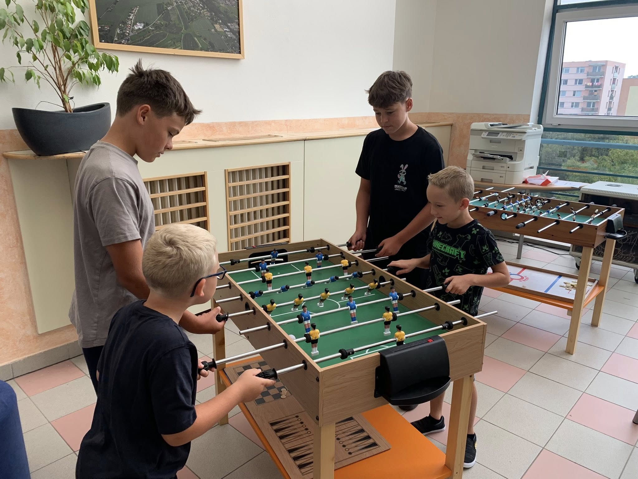 Už druhý den se na ně deváťáci přišli znovu podívat. Společně si nakreslili obrázek a deváťák provedl svého prvňáčka celou školou. Dokonce zavítali i do ředitelny, kde si popovídali s paní ředitelkou. Na chodbě si vyzkoušeli tabuli Amos nebo si zahráli fotbálek. V závěru si společně postavili stavbu z kostek. Bylo úžasné sledovat, jak jsou deváťáci ke svým prvňáčkům ohleduplní, pozorní a přijímající.