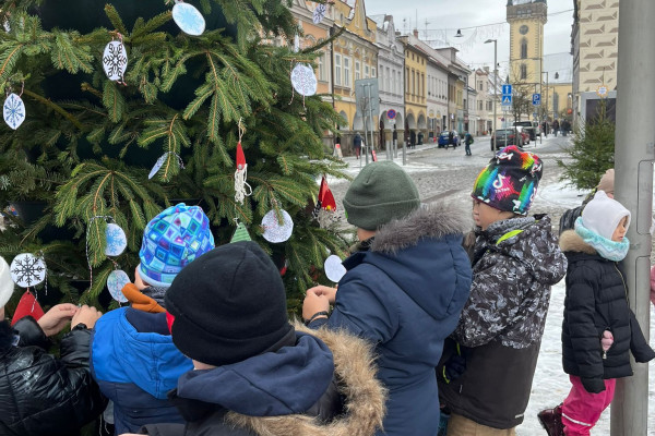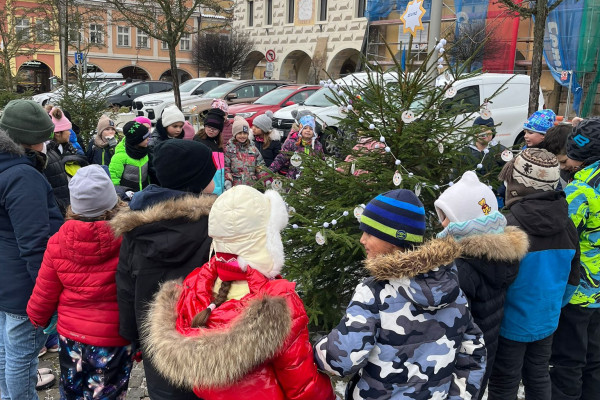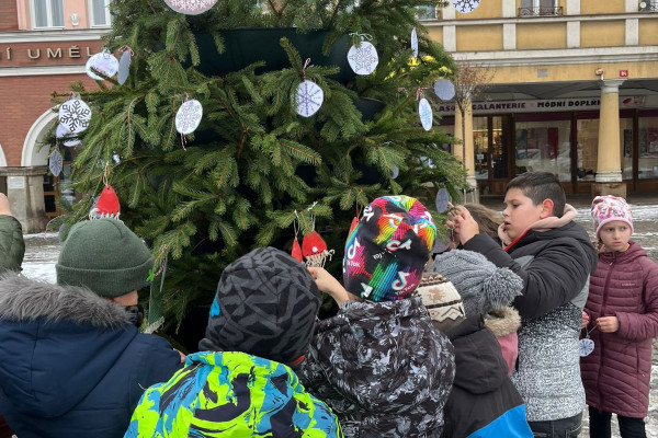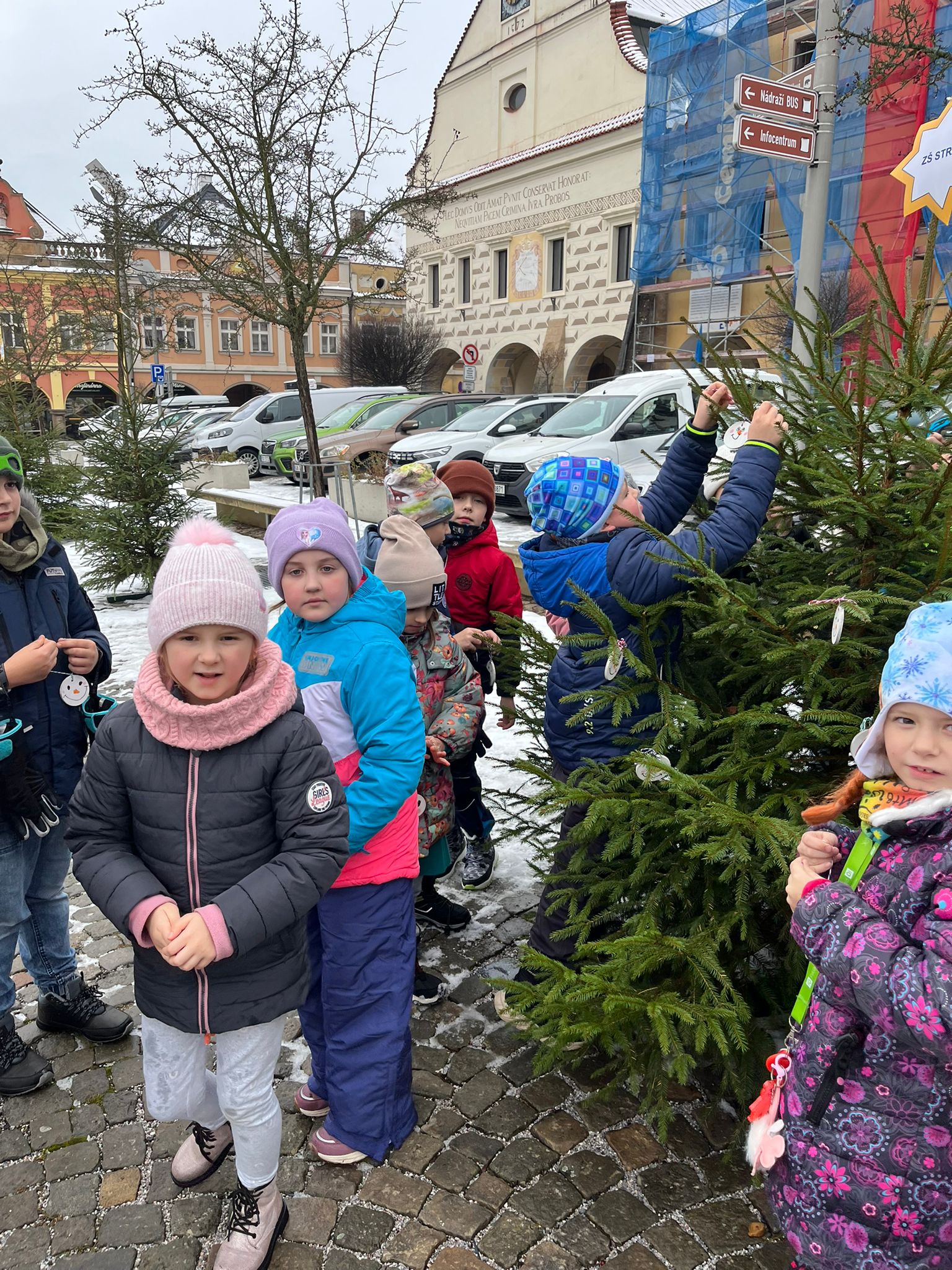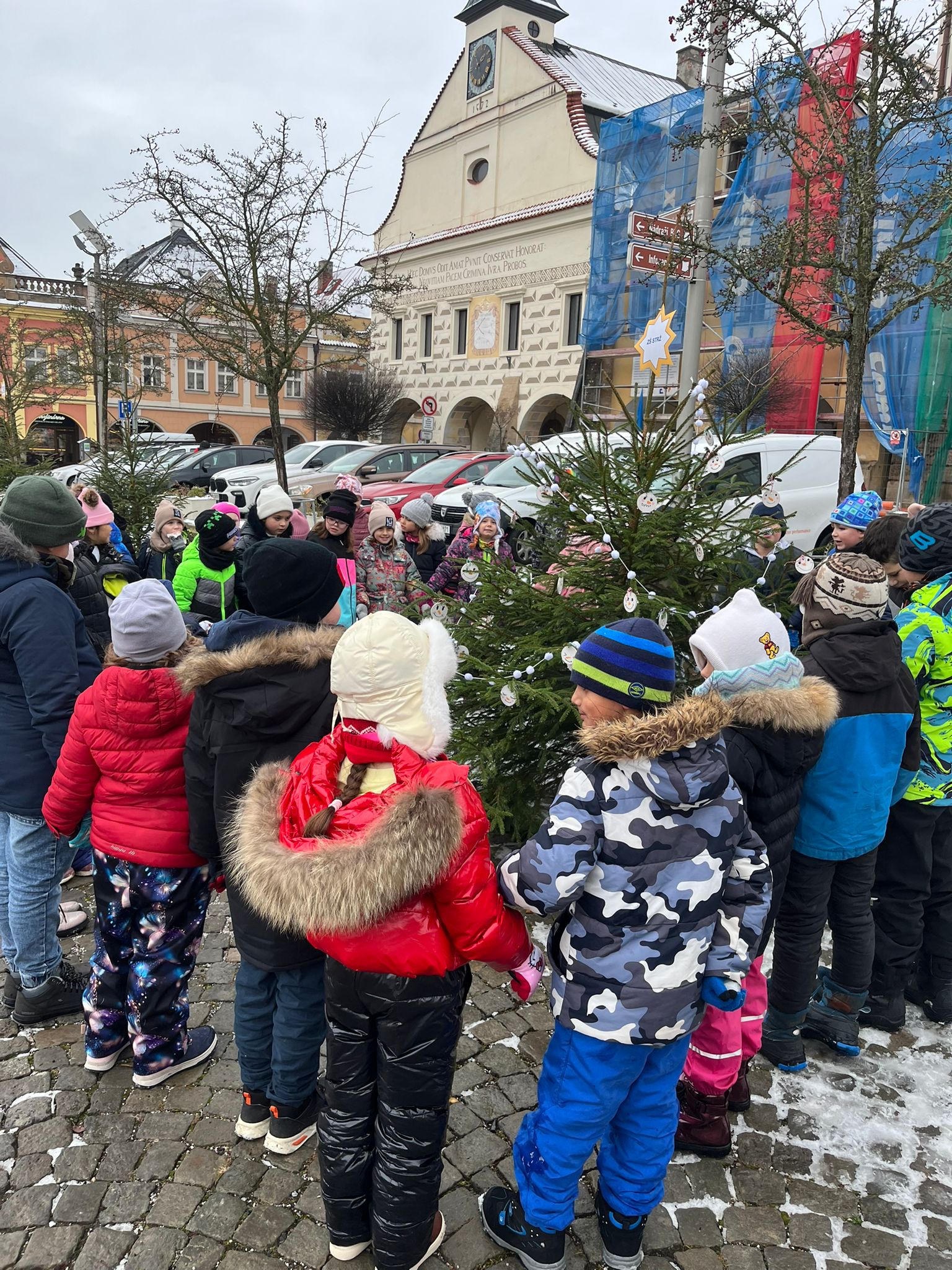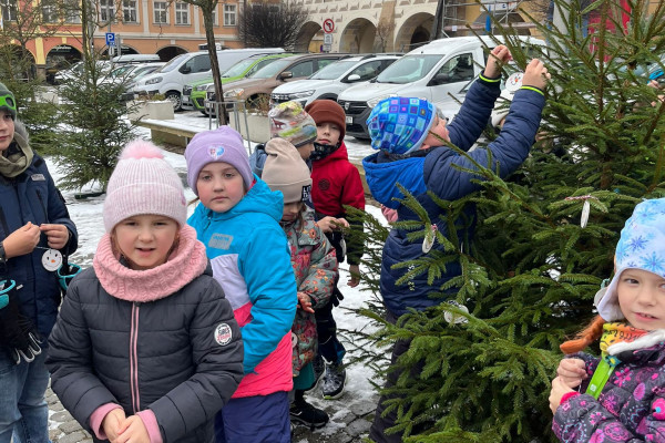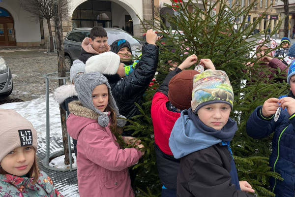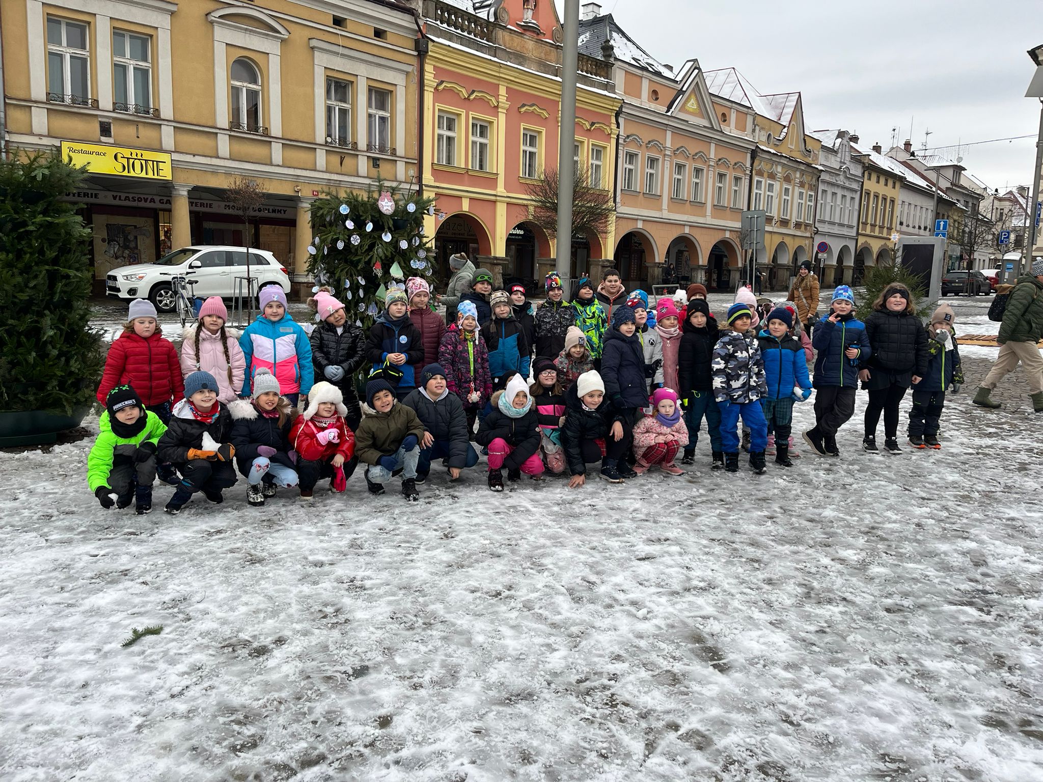 Již tradičně zdobí děti z naší školní družiny vánoční stromeček na náměstí. Letos jsme si tuto milou povinnost rozdělili mezi mladší a starší děti. Mladší děti z předškolní třídy vyrobily pozoruhodné řetězy z chlupatých kuliček a starší děti z 1. – 5. ročníku, kteří si s výrobou také daly velkou práci, připravily krásné sněhuláčky na dřevěném kolečku. V úterý 26.11. po obědě vše děti z 1.- 4. ročníku přinesly na náměstí a vyzdobily jimi vánoční stromeček. Letos k vánočnímu stromečku přibylo ještě zdobení věže, kam děti pověsily vločky, trpaslíky a perníčky. Jak se jim to povedlo posuďte sami. Celá akce se vydařila a kouzlo Vánoc bylo tu