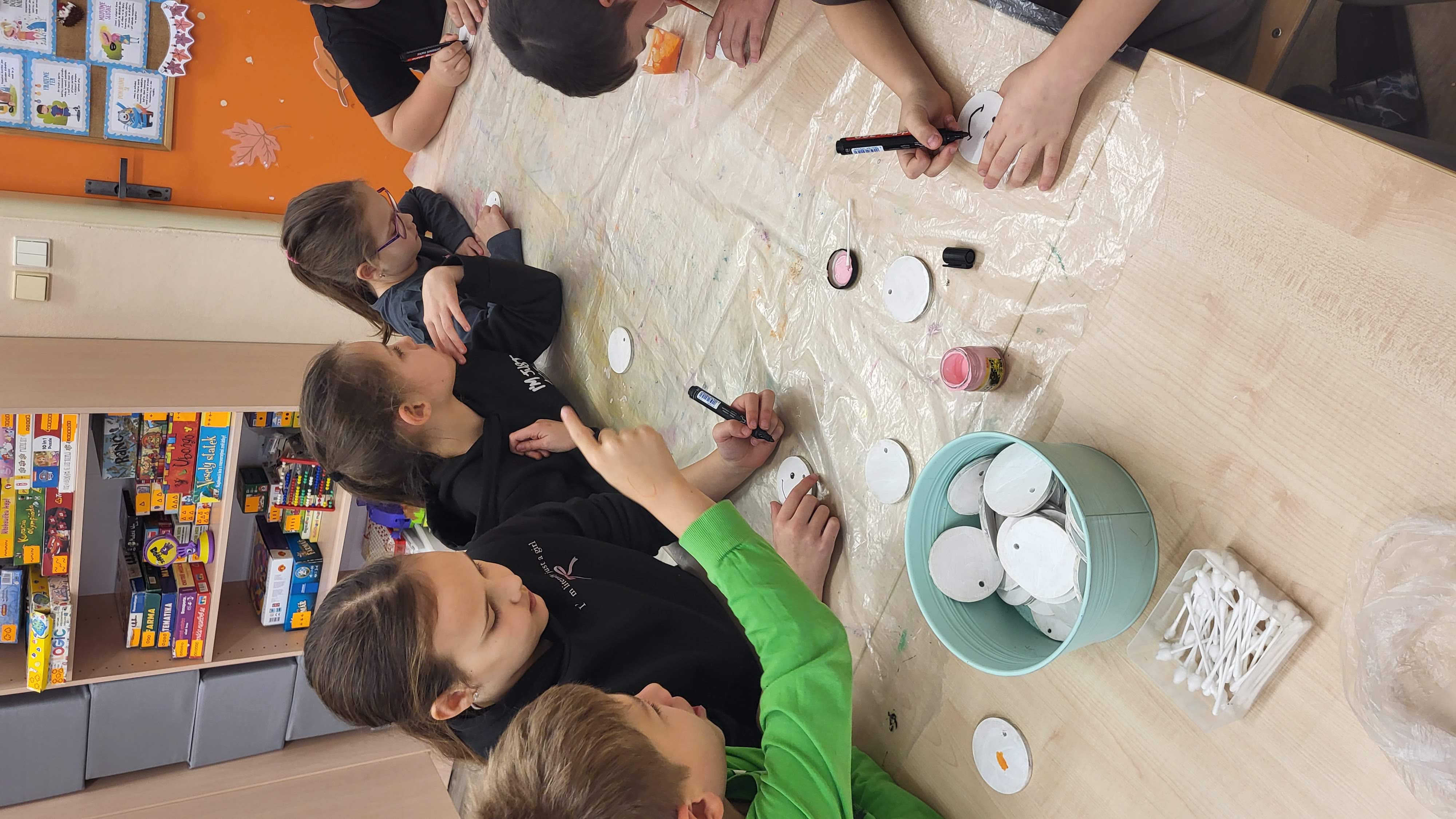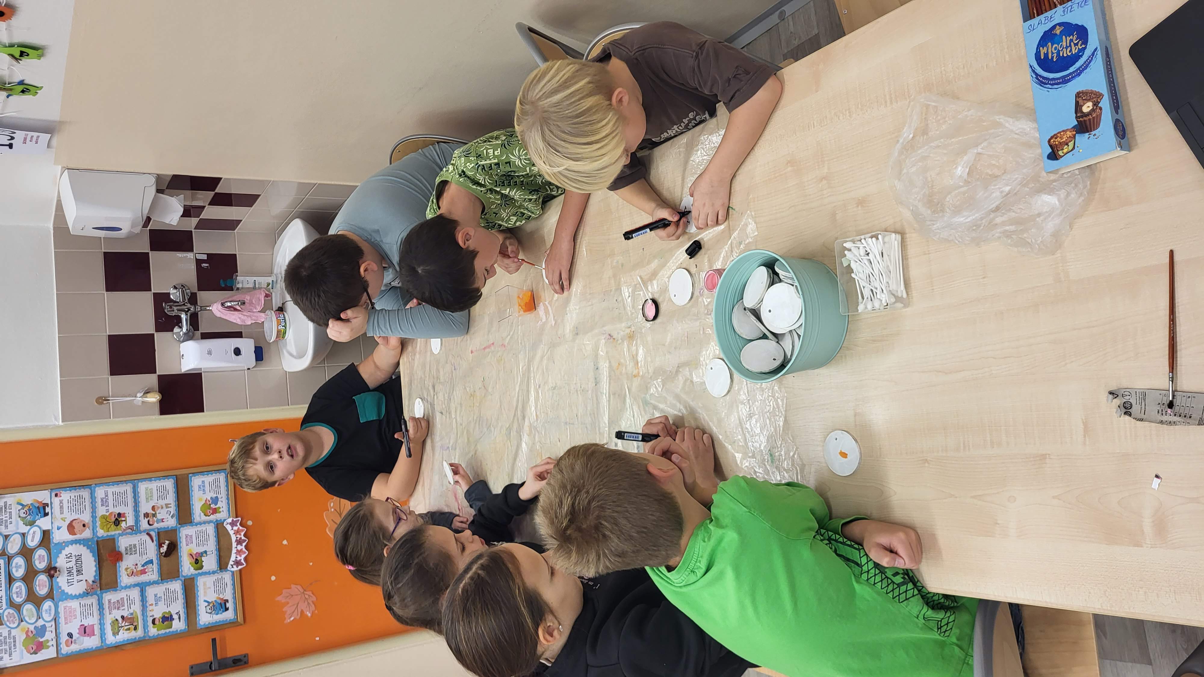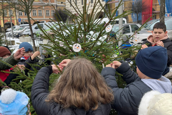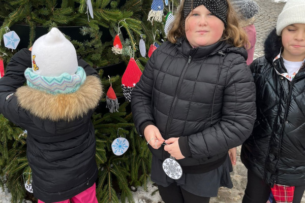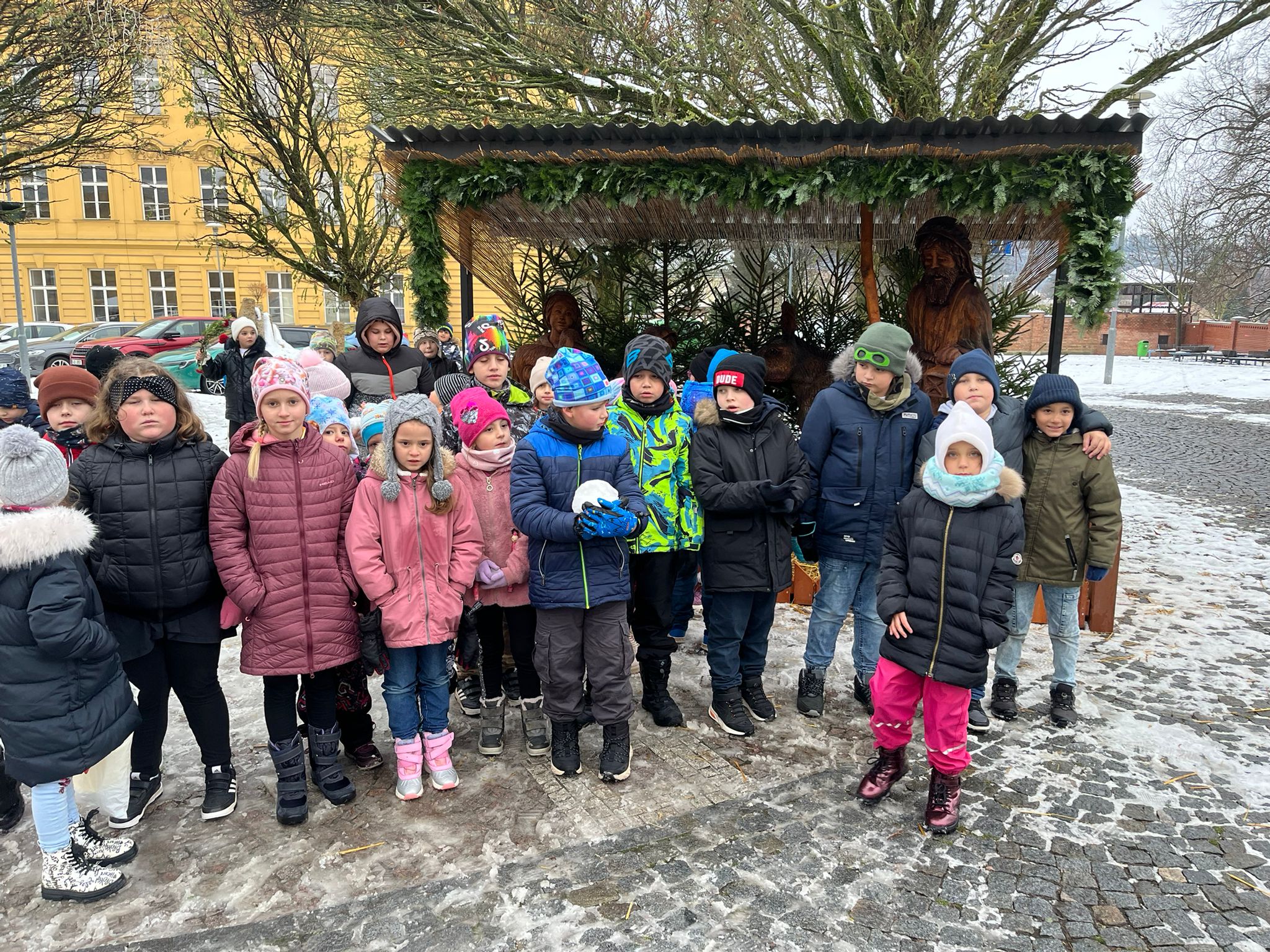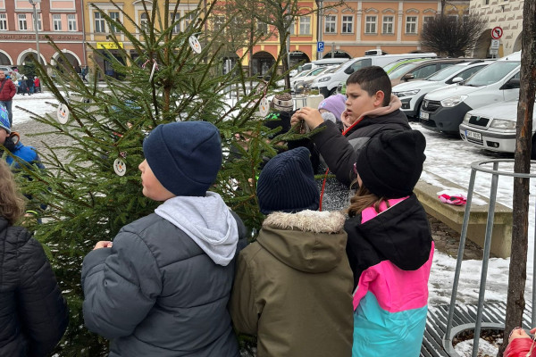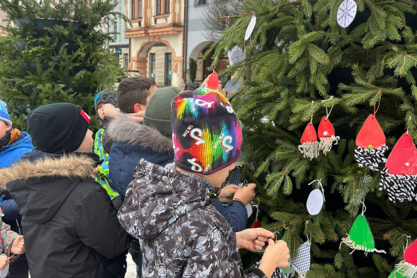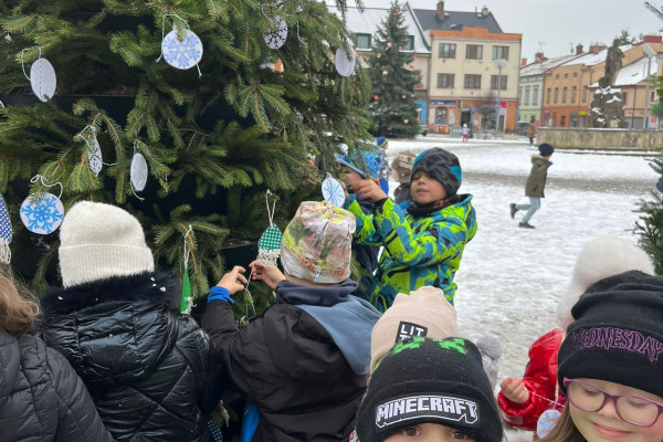 Již tradičně zdobí děti z naší školní družiny vánoční stromeček na náměstí. Letos jsme si tuto milou povinnost rozdělili mezi mladší a starší děti. Mladší děti z předškolní třídy vyrobily pozoruhodné řetězy z chlupatých kuliček a starší děti z 1. – 5. ročníku, kteří si s výrobou také daly velkou práci, připravily krásné sněhuláčky na dřevěném kolečku. V úterý 26.11. po obědě vše děti z 1.- 4. ročníku přinesly na náměstí a vyzdobily jimi vánoční stromeček. Letos k vánočnímu stromečku přibylo ještě zdobení věže, kam děti pověsily vločky, trpaslíky a perníčky. Jak se jim to povedlo posuďte sami. Celá akce se vydařila a kouzlo Vánoc bylo tu