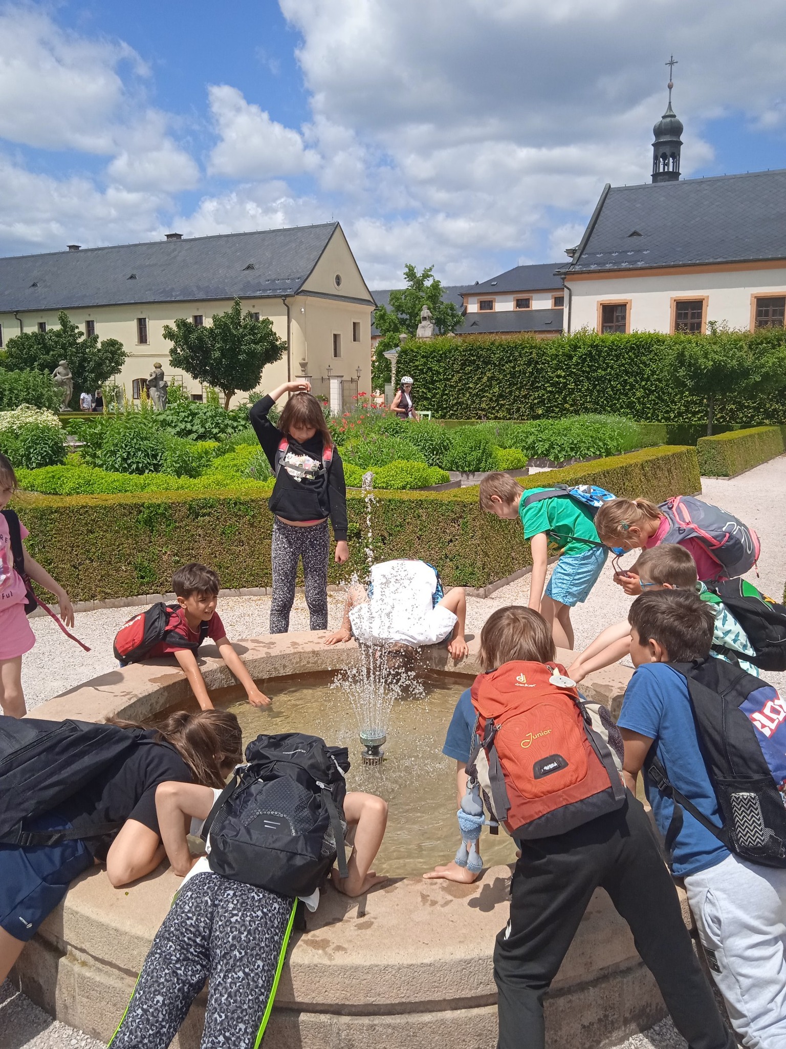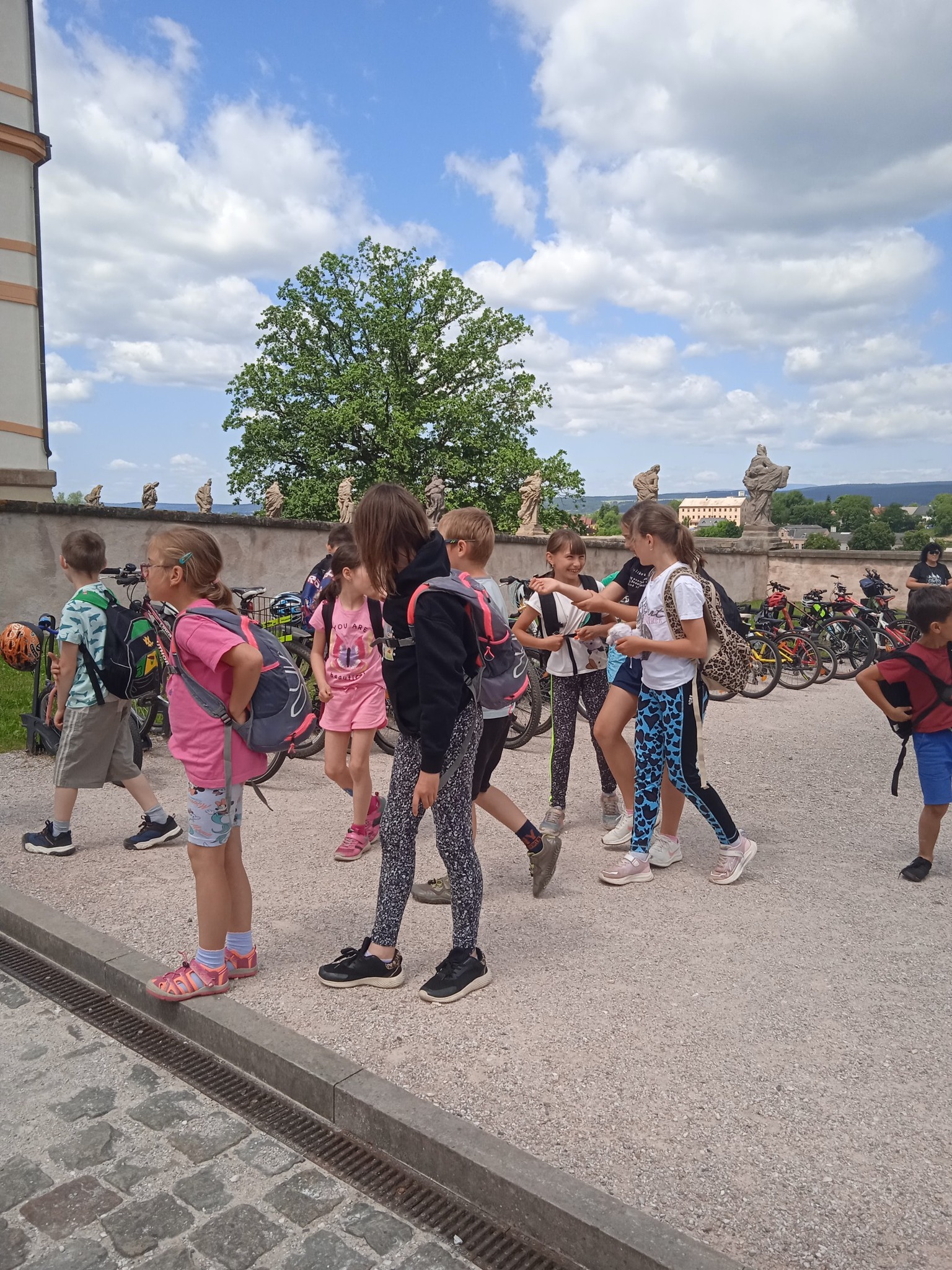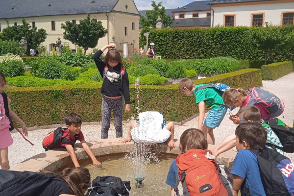 Náš letošní školní výlet byl úplně jiný než jindy. Žádný Kinedryl a horko v autobuse. Celá žirečská škola se vydala do Kuksu na kolách. Po nové cyklotrase a zmrzlině ve Stanovicích se nám jelo tak perfektně, že jsme Kuksem profrčeli jako vítr a zastavili se až v Brodě nad Labem na hřišti. Ale nebojte se! O oběd Na sýpce ani bylinkovou zahradu jsme nepřišli. Prostě jsme se tam vrátili. I pruďák ve Slotově jsme zvládli. Vážně super výlet! A prasklá duše byla jen jedna, a to na kole.