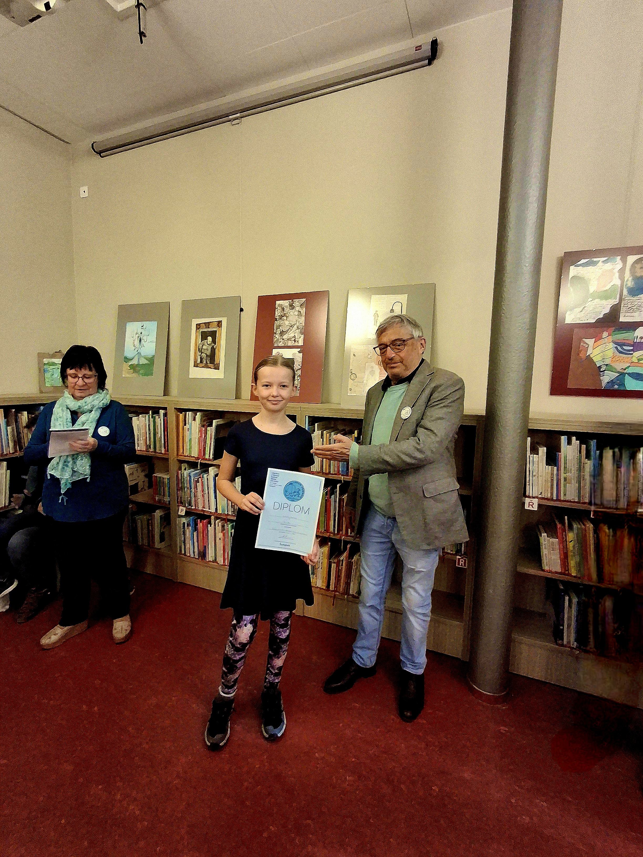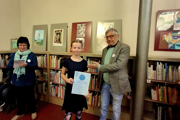 V Šumperku probíhá vždy na podzim literární festival Město čte knihu. Každý rok bývá ve znamení speciálního hosta a po celý týden se tematicky pracuje s jeho tvorbou. Letošní ročník prezentoval život a dílo spisovatele Ludvíka Aškenazyho. Téma literární soutěže bylo inspirováno názvem jedné z jeho povídek – Starý obrázek. I naše škola měla v soutěži zastoupení. Své práce poslaly odborné porotě dvě žákyně. Martina Nedvědová (9.A) se pustila do prózy, pojmenované jednoduše – Domov. Karolína Špůrová (6.A) se nebála tvořit ve verších a nakonec se s básničkou Smutná paní umístila na 3. místě. „Bronz“ je skvělý úspěch, protože Kája letos nově soutěží ve věkové kategorii 2. stupně a nižších gymnázií. Z velké dálky tedy dorazila na slavnostní vyhlášení, kde převzala diplom a věcné ceny z rukou spisovatele a režiséra Jindřicha Manna (syna L. Aškenazyho). A nepodnikla výlet pouze za kulturou! Zároveň využila krás tohoto kraje a navštívila také Dolní Moravu, turisty vyhledávanou lokalitu. Karolína si tak odvezla určitě spoustu zážitků a nápadů pro další tvoření. Gratuluji k úspěchu a děkuji oběma dívkám za reprezentaci školy. Vždyť psaní je radost! Mgr. Jana Hronešová