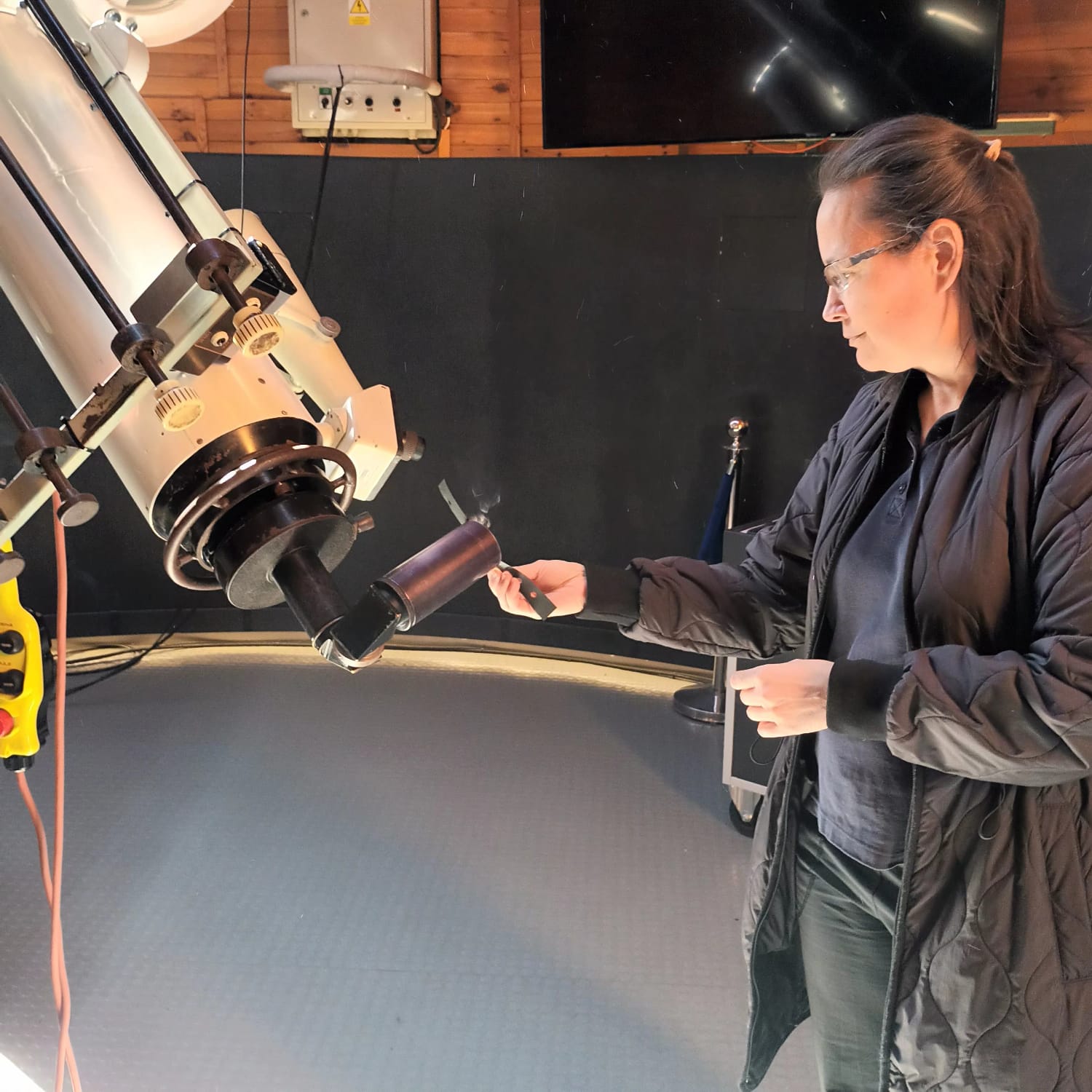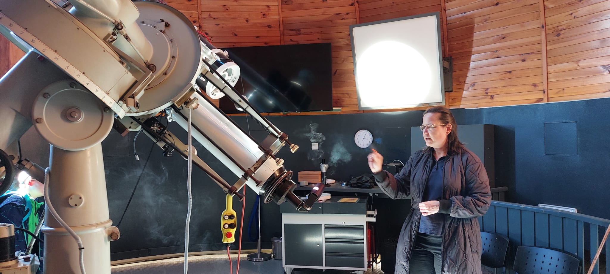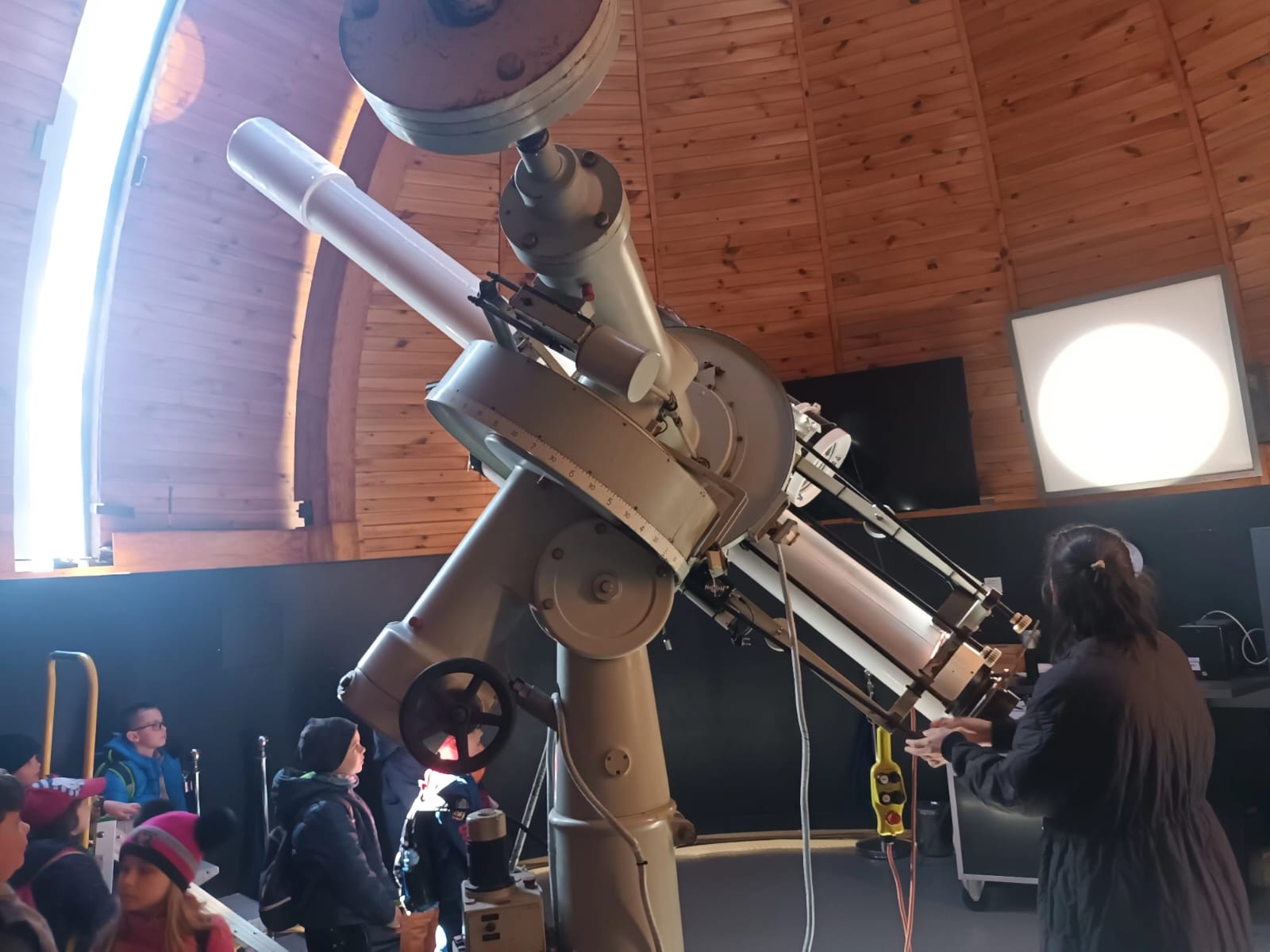 Na závěr jsme se podívali na Slunce pomocí dalekohledu s projektorem. Paní průvodkyně nám ukázala, jak silné je sluneční záření – pomocí čočky dokázala zapálit papír, protože teplota v ohnisku dosahuje až kolem 600 °C. Děti tak pochopily, že při pozorování Slunce je vhodné používat speciální brýle a v létě nosit sluneční brýle, abychom si chránili zrak.