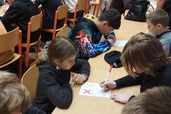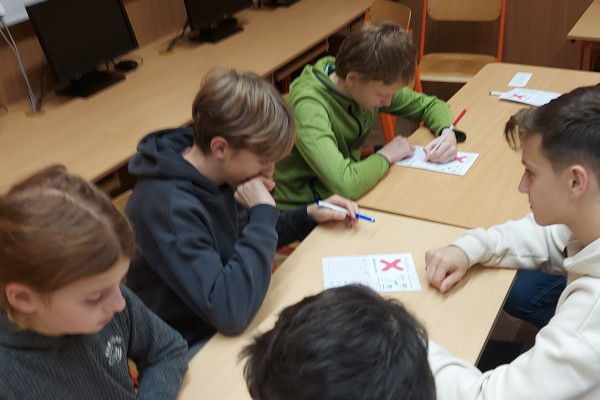 Zatímco soutěž jednotlivců probíhá v prvních dvou kolech online, týmová část se odehrává prezenčně na vybraných školách. My jsme se letos rozhodli zúčastnit kola pořádaného Gymnáziem a Střední odbornou školou pedagogickou v Nové Pace. Po úvodním seznámení s průběhem soutěže se naše týmy pustily do základní části a následně i do napínavého play-off, které rozhodovalo o postupu do krajského kola v Hradci Králové.