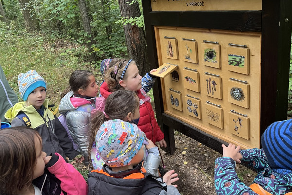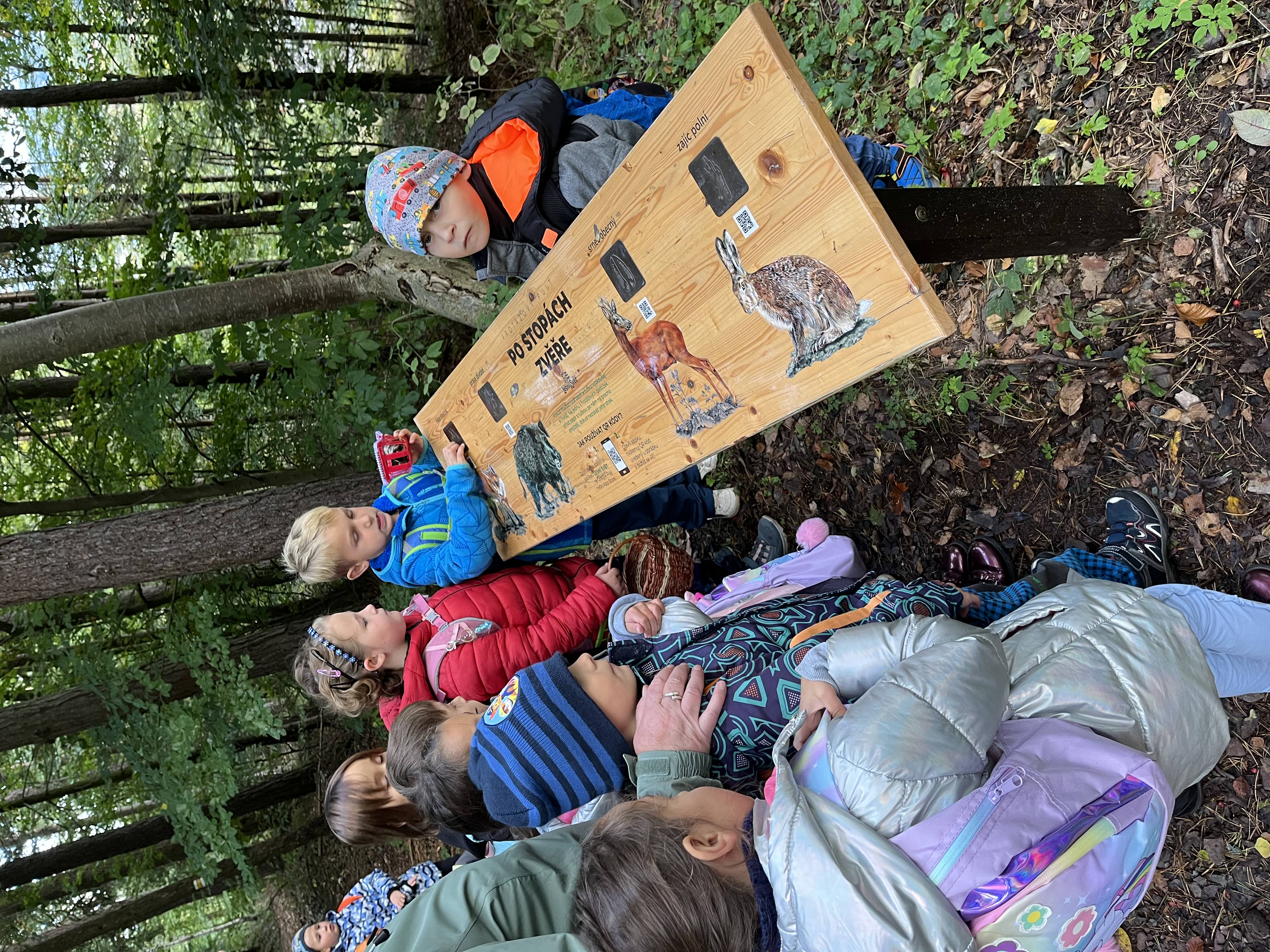Podzim přináší do lesa kouzelnou proměnu. Listy stromů se barví do odstínů žluté, červené a hnědé, v trávě šustí spadané listí a vzduch voní po houbách a vlhké půdě. Tento čas jsme využili k dopolední výuce v lese, kde se děti vydaly na naučnou stezku „Na Stráni“.