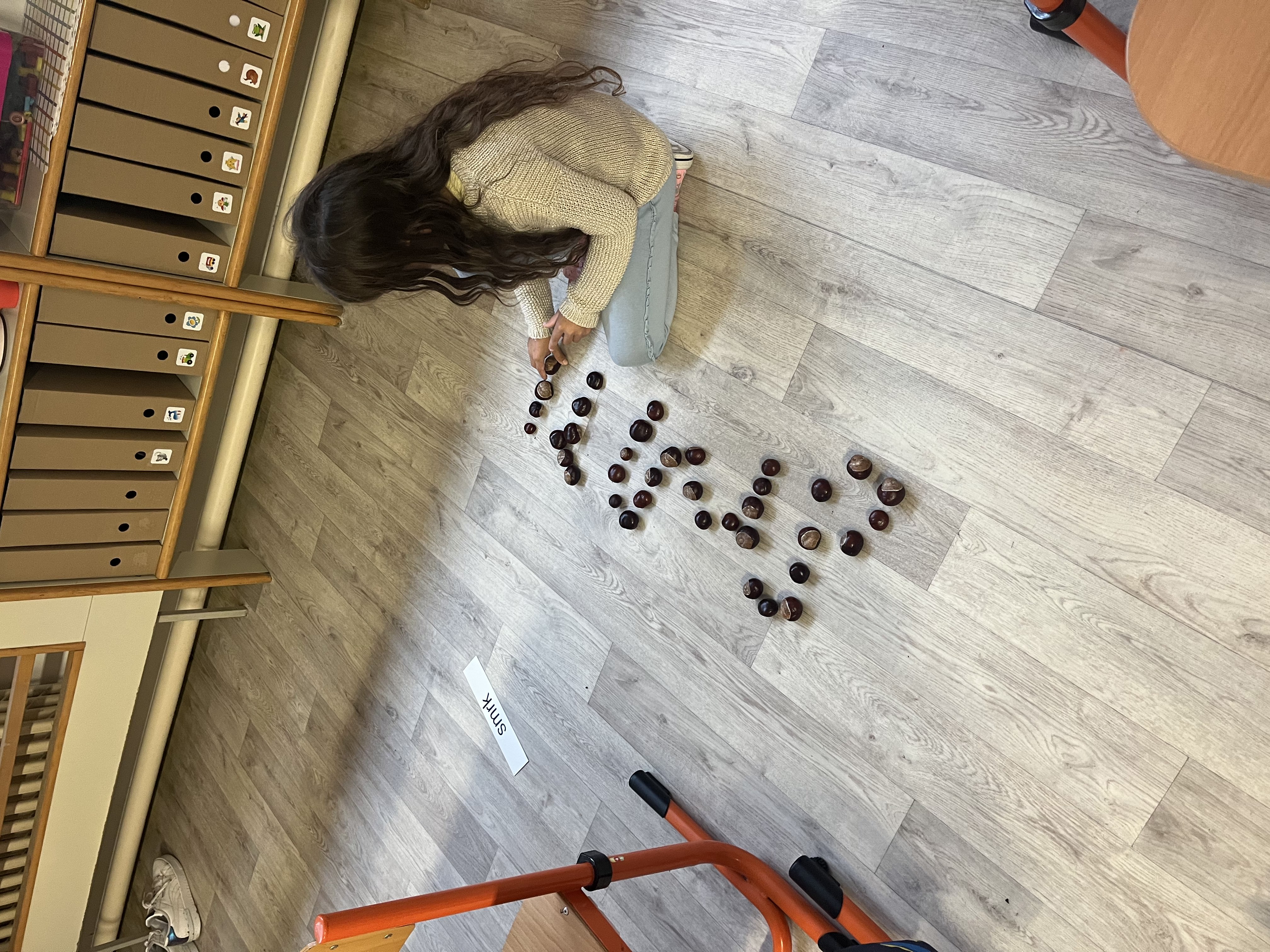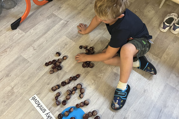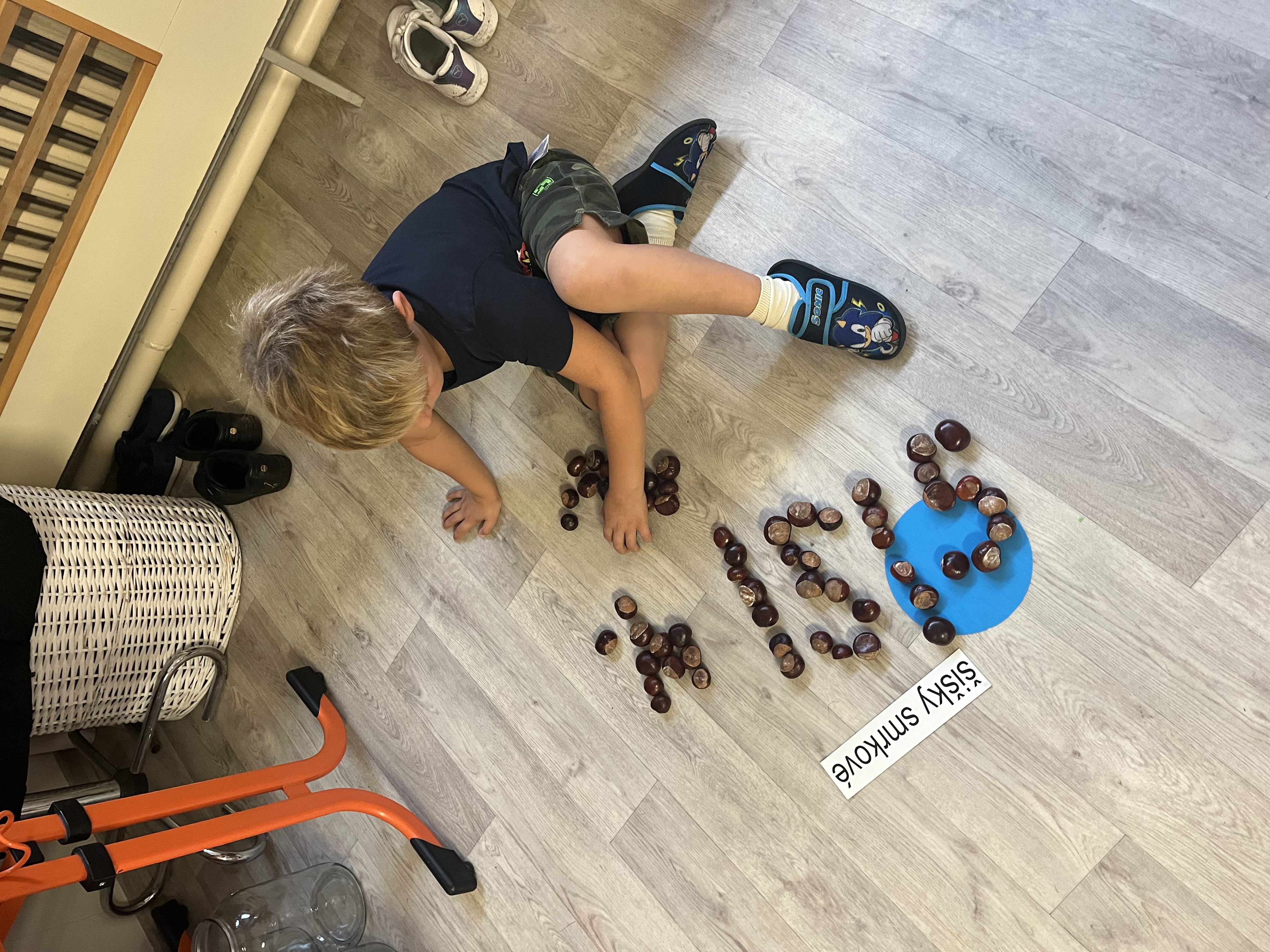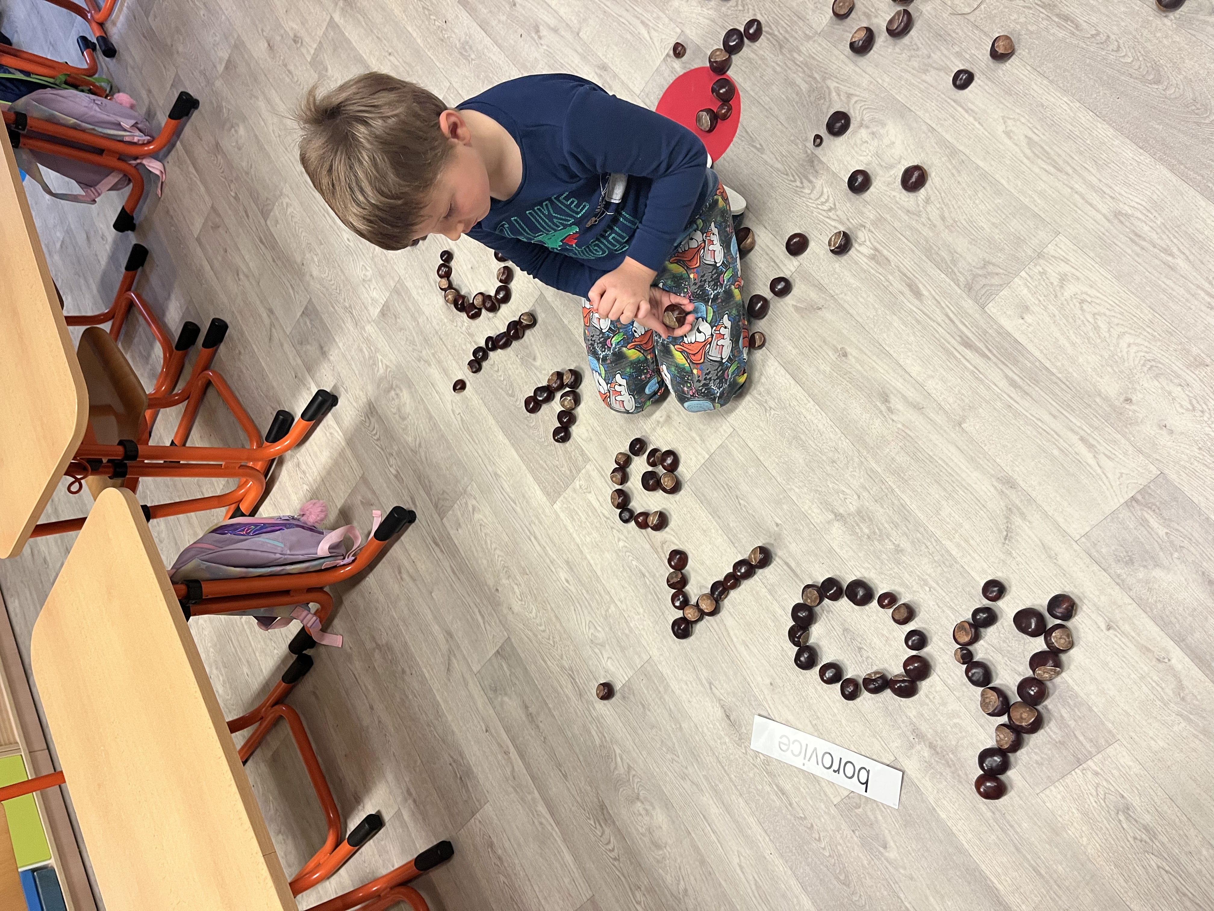V dalších dnech jsme navázali na dopolední zážitky didaktickými činnostmi. Z vlastně vytvořené podzimní sbírky děti třídily přírodniny podle tvaru, barvy a velikosti, porovnávaly množství kaštanů, žaludů či šišek a učily se vyjadřovat porovnání pomocí čísel i slov („více – méně – stejně“). Děti pracovaly ve dvojicích a skupinách, rozvíjely tak komunikační a kooperativní dovednosti – domlouvaly se, argumentovaly, popisovaly a vysvětlovaly svůj postup.