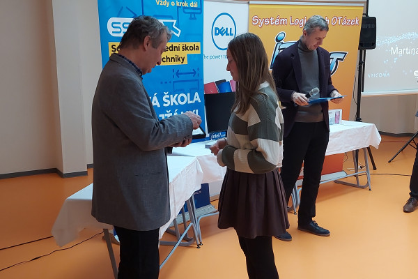 Hned tři naše žákyně se probojovaly do finálového kola konaného na půdě pořádající školy v Praze. To je zároveň maximální možný počet soutěžících, které může jedna škola do finále vyslat. Už při zveřejnění startovní listiny bylo patrné, že mezi finalisty výrazně převažují chlapci, a proto si děvčata nedělala příliš velké naděje. Přesto nakonec ukázala, že se mohou směle měřit s kýmkoli.